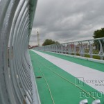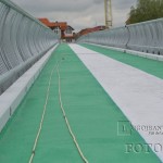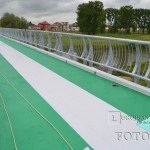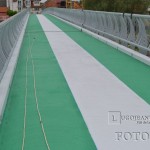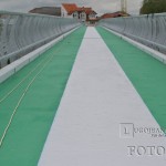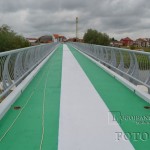 La mai puțin de două săptămâni până la inaugurare, podul pietonal de peste Timiș este finisat în aceste zile de către muncitori, care au realizat astăzi vopsirea acestuia cu un strat protector de bitum special, colorat în verde și alb. Cele trei linii marchează trecerea pentru pietoni cu alb și trecerile pentru bicicliști, pe o parte și pe cealaltă, cu verde. Podul pietonal va face de miercuri, 21 mai, legătura pentru lugojeni dintre cartierul Ștrand și zona pieței agroalimentare „George Coșbuc” de pe partea cealaltă de râu.