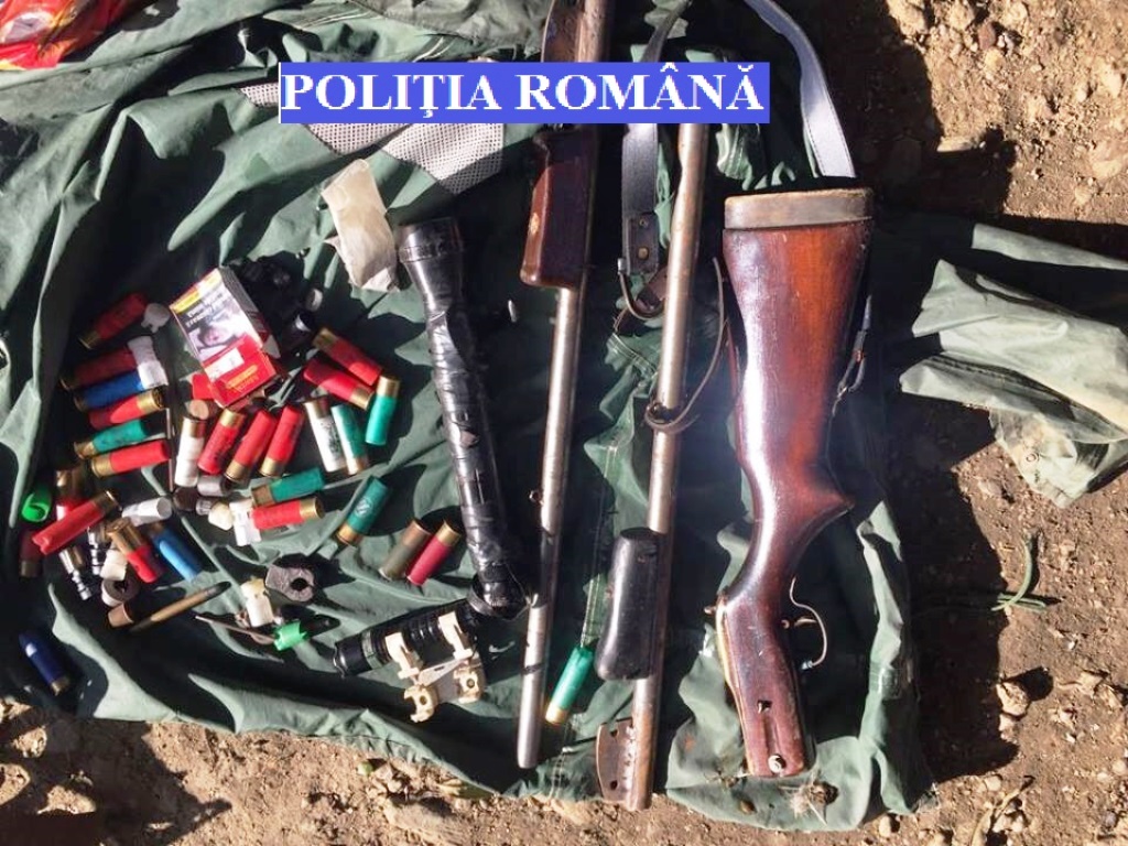 În urma percheziției, de la domiciliul bănuitului au fost ridicate în vederea continuării cercetărilor o armă confecționată artizanal, mai multe cartușe cu alice, două lanterne pentru braconaj și o capcană din metal pentru mamifere mari.