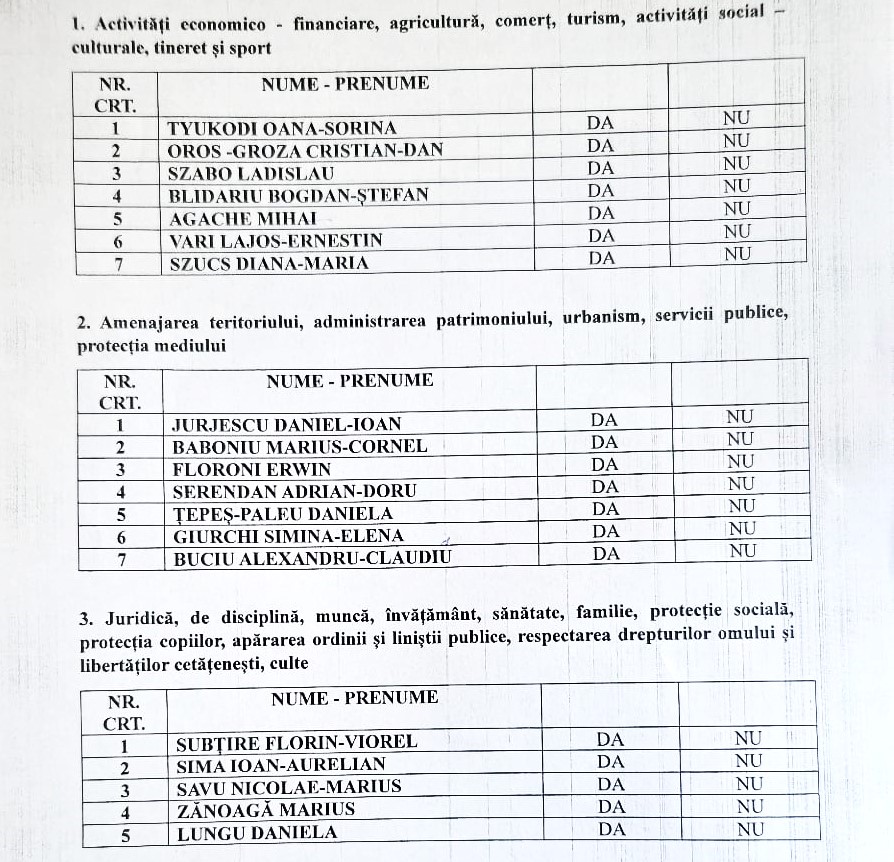 O decizie importantă a fost stabilirea comisiilor de specialitate ale Consiliului Local al Municipiului Lugoj și a componenței acestora, pe care o puteți vedea în imaginea de mai jos: