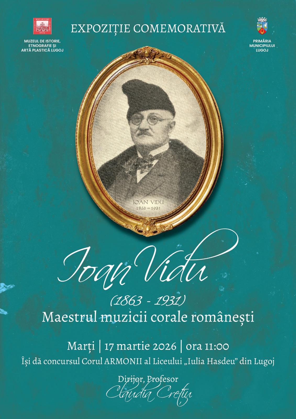 Muzeul din Lugoj organizează marți, 17 martie 2026, de la ora 11, o expoziție comemorativă dedicată marelui compozitor și dirijor Ioan Vidu, una dintre cele mai importante personalități care marchează cultura muzicală bănățeană de la sfârșitul secolului al XIX-lea și începutul secolului al XX-lea. Istoria Reuniunii Române de cântări și muzică a Lugojului, dar și activitatea Asociației corurilor și fanfarelor române din Banat își identifică existența cu prodigioasa personalitate a celui supranumit doinitorul Banatului.