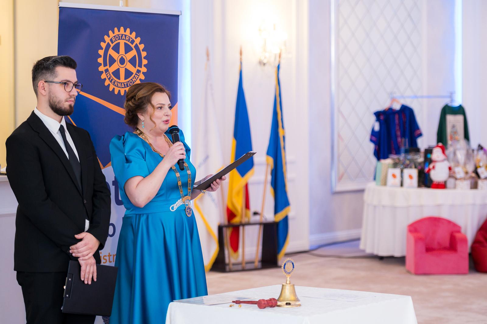 Evenimentul a fost o adevărată sărbătoare, organizată cu minuțiozitate, fiecare moment fiind gândit pentru a crea o atmosferă memorabilă. După primirea invitaților, balul a fost deschis oficial cu defilarea steagurilor și intonarea imnului Rotary, marcând solemnitatea și tradiția acestui tip de eveniment. Prezentările oficiale au continuat cu discursuri din partea președintei clubului, Raluca Ardelean, și a altor invitați de seamă, precum Ovidiu Bunget, fost guvernator al Districtului 2241, și Alin Deteșan, asistent guvernator.