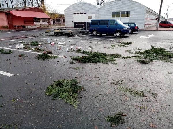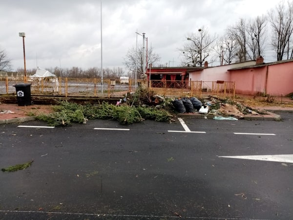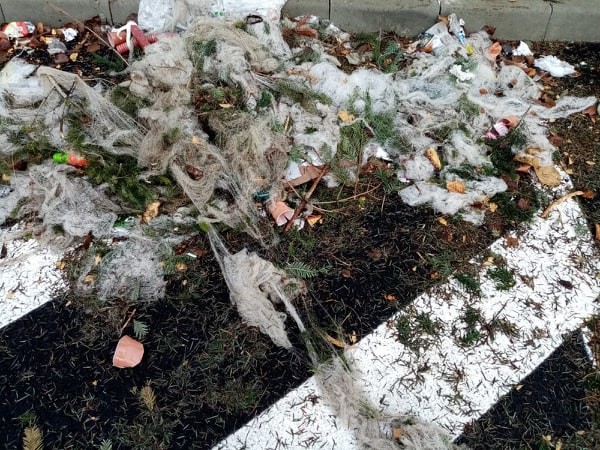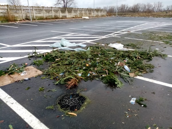 Zona „Bazar”, unde au comercianții de brazi și-au vândut marfa arată ca „după război”. Deși a trecut aproape o săptămână de când vânzarea brazilor s-a încheiat, nimeni nu a mai făcut curat în zona respectivă. Câțiva brazi întregi, sacii cu gunoi, crengi împânzesc toată suprafața.