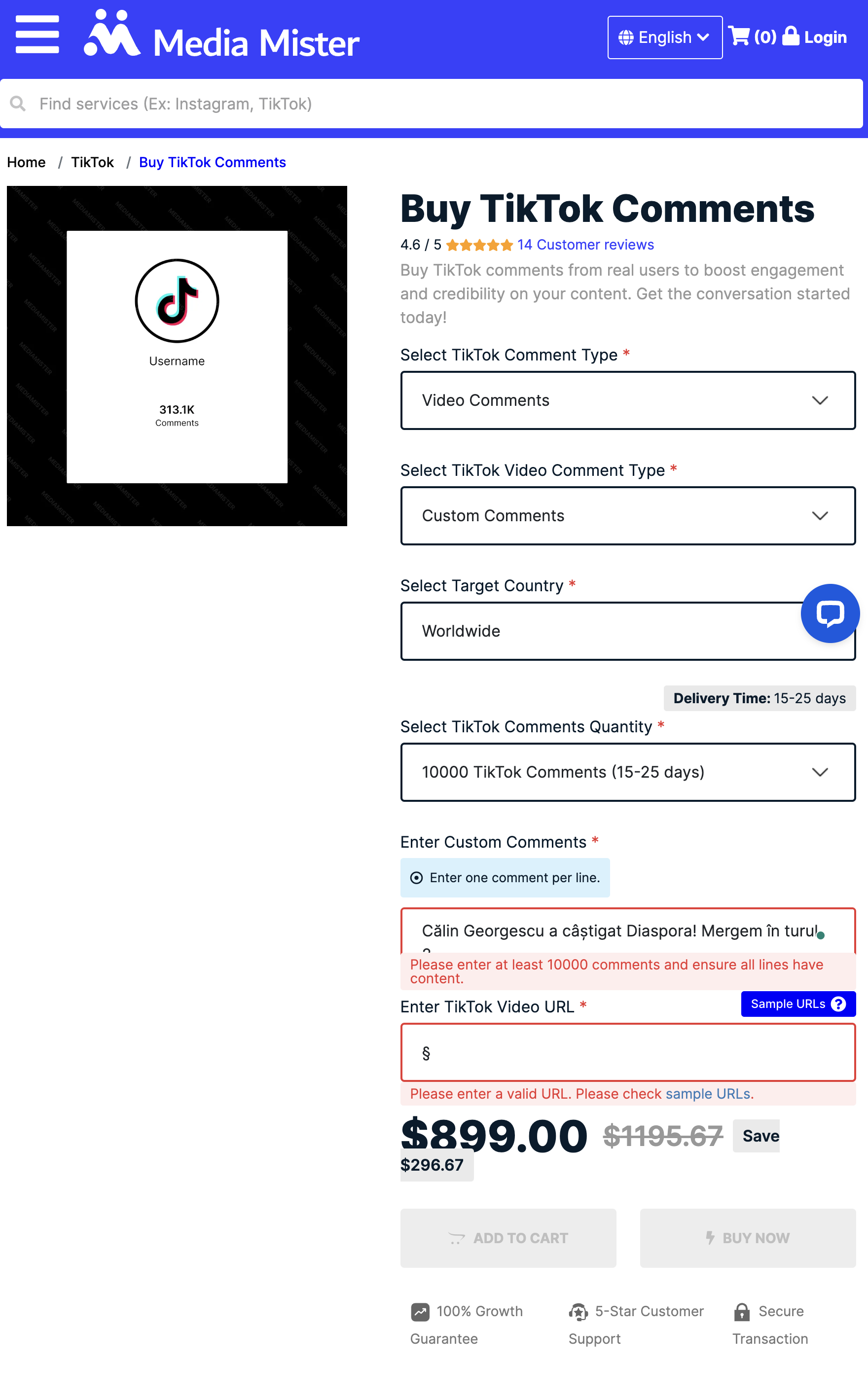 Și pe lângă TikTok, are armate de oameni care, așa cum vedeți și în site-ul din imaginea de mai jos (sunt sute de asemenea site-uri la dispoziția tuturor) se ocupă cu datul de like-uri, comentarii și tot ce ține de acțiunea digitală de a împinge în sus, în algoritm, anumite postări. Nu, nu este doar o teorie, chiar puteți face asta în acest moment.