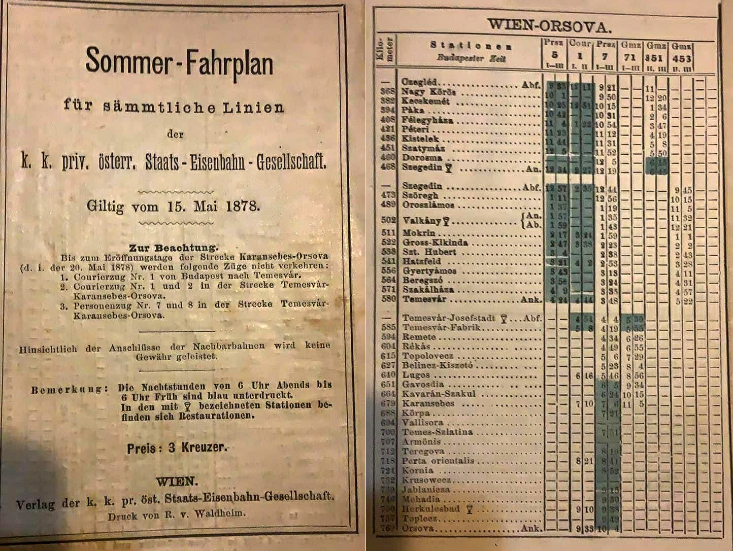 Linia ferată Timișoara – Orșova a fost realizată între 1875 și 1878 de StEG (Societatea privilegiată austriacă de căi ferate), sub coordonarea directorului August W. de Serres. Secțiunea Timișoara – Lugoj – Caransebeș, cu o lungime de aproximativ 100 de kilometri, a fost inaugurată la 22 octombrie 1876, la doar zece luni de la începerea lucrărilor. Investiția a inclus zece gări, 52 de cantoane și două poduri importante peste Bega și Timiș, fiind una dintre cele mai semnificative dezvoltări feroviare din Banat în secolul al XIX-lea.