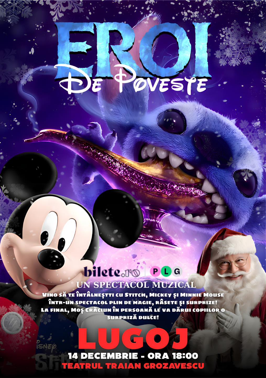 Duminică, 14 decembrie, de la ora 18:00, la Teatrul Municipal „Traian Grozavescu” din Lugoj, magia sărbătorilor prinde viață în spectacolul muzical „Eroi de Poveste”, o aventură unică, plină de magie, umor și emoție, dedicată întregii familii.