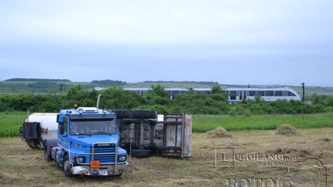 Actualitate Lugoj FOTO! A parcat autocisterna pe tarlaua cu fân, pentru că a ratat ieșirea din sensul giratoriu de la Coșteiu byGabriel Iosa23 mai 2013