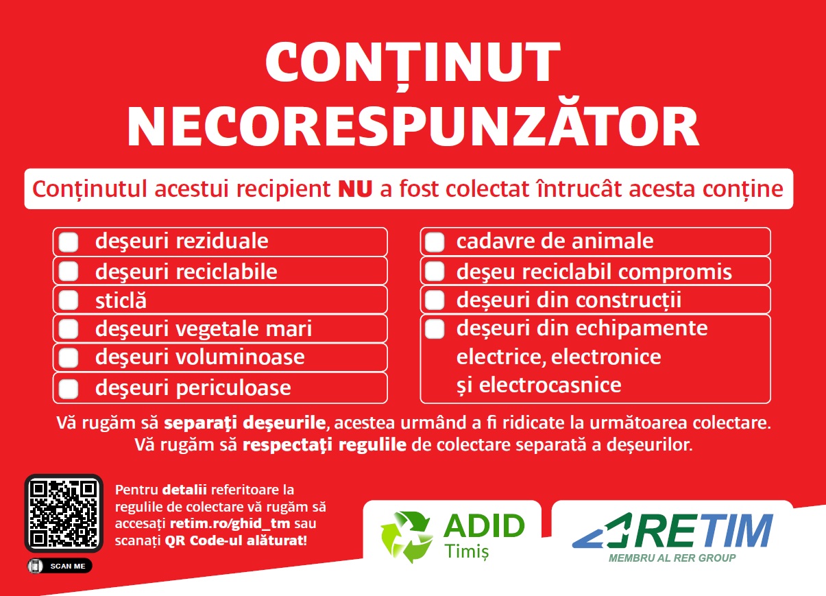 Anunțuri COMUNICAT RETIM – Campania de colectare a deșeurilor voluminoase din Zona 0 Ghizela se amână la solicitarea ADID Timiș byGabriel Iosa21 octombrie 2025