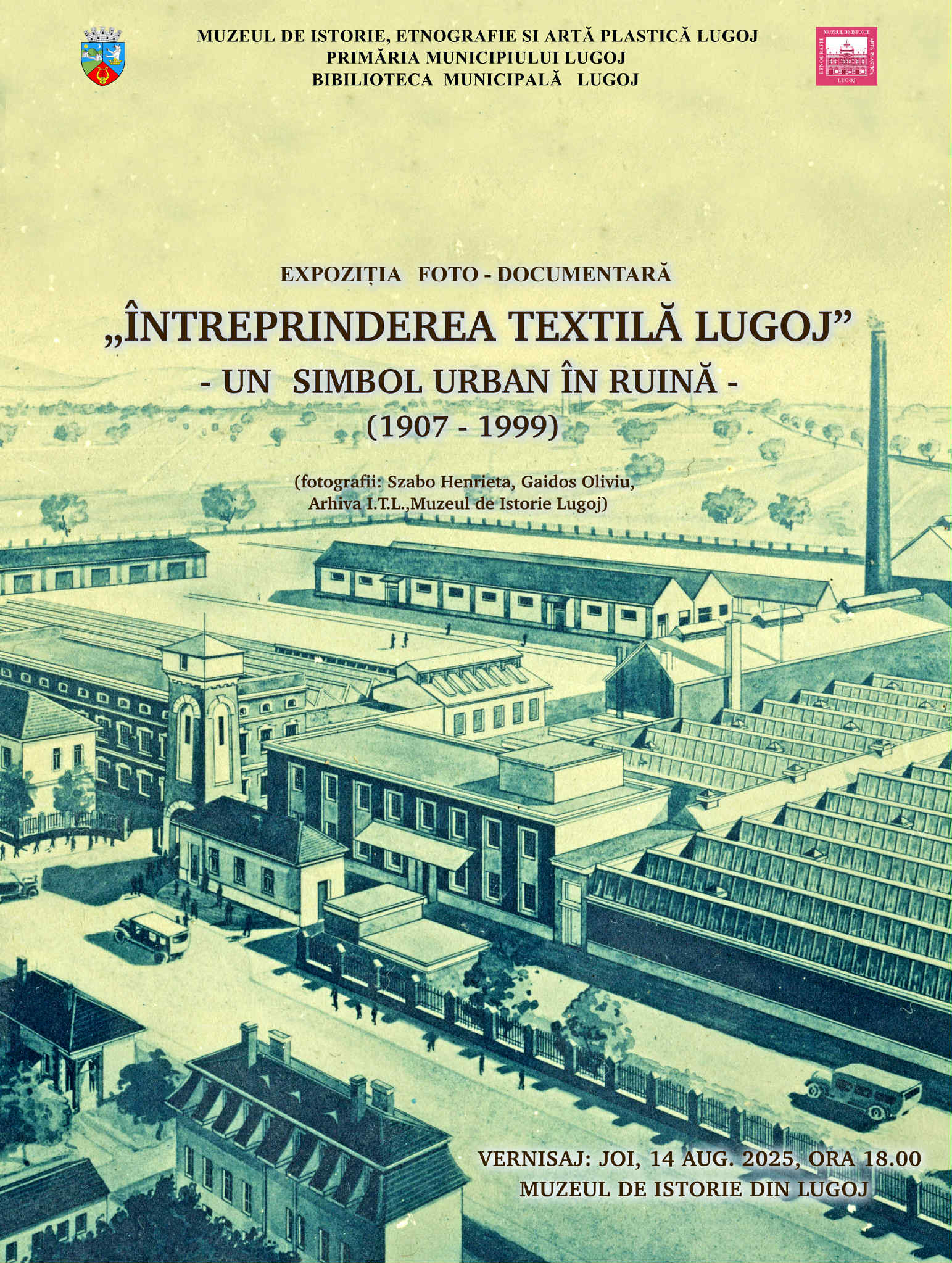 Evenimentul va avea loc joi, 14 august 2025, de la ora 18:00, în incinta muzeului, și propune o călătorie vizuală în istoria fabricii care, timp de aproape un secol, a fost un pilon al economiei locale. Sub titlul „Întreprinderea Textilă Lugoj – un simbol urban în ruină (1907–1999)”, expoziția foto-documentară reunește imagini de arhivă, documente și mărturii care ilustrează evoluția, gloria și declinul celui mai mare angajator al Lugojului de altădată.