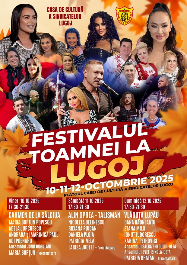 În perioada 10–12 octombrie 2025, pe platoul Casei de Cultură a Sindicatelor din Lugoj va avea loc o nouă ediție a Festivalului Toamnei și al Vinului, eveniment organizat de Asociația Culturală PORDAMPI.