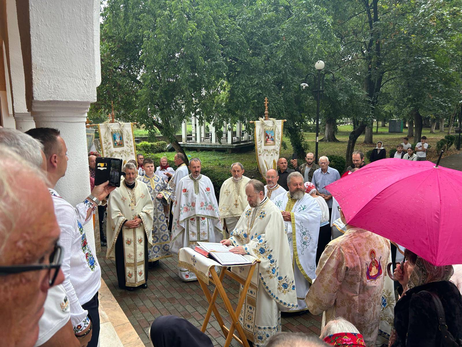 Slujba religioasă a fost oficiată de Preaonoratul Părinte Protopop Petru Rosoca, care a rostit și un cuvânt de învățătură. Alături de acesta au slujit preoți din mai multe parohii, printre care: Pr. Todor Mazur (parohia New York), Pr. Prof. Dr. Marius Florescu (Timișoara), Pr. Nicolae Lalo (Cornuțel), Pr. Vasile Iulian Ulici (Remetea Luncă), Pr. Olvin Valerian Clempuşac (Dragomirești), Pr. Dan Dologa (Remetea Mică), Pr. Petru Trainoschi (Pădureni), Pr. Mihai Cinar (Știuca), Pr. Vasile Mareniuc (Petroasa Mare) și Pr. Gheorghe Rusneeac (pensionar).