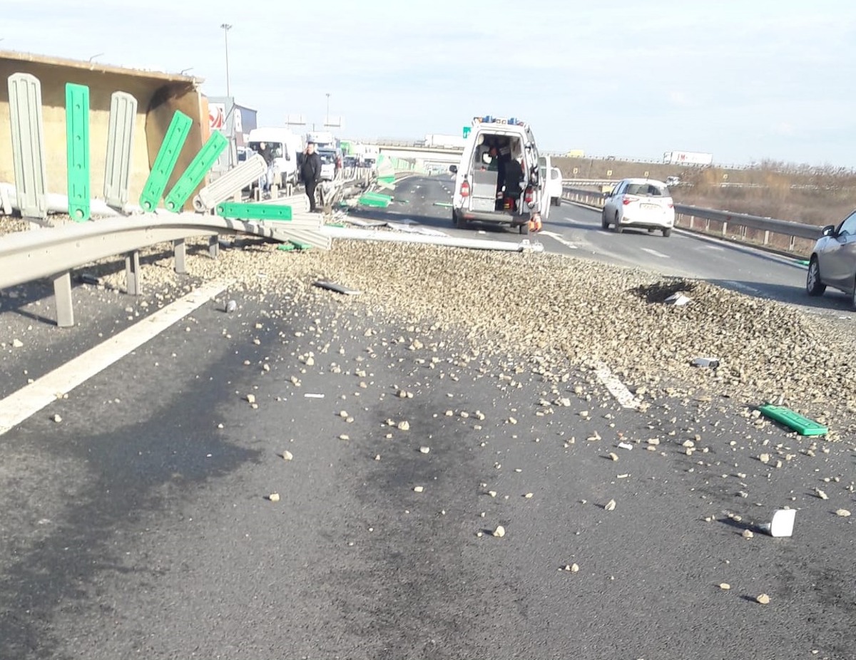 Trafic blocat pe autostrada ce leagă Lugojul de Timișoara. În jurul orelor 15, un bărbat în vârstă de 50 de ani, a condus un autotren pe A1, dinspre municipiul Timișoara înspre localitatea Margina, iar la un moment dat, la intersecția autostrăzii A1 cu A6 (zona Țipari) ar fi pierdut controlul asupra direcției de deplasare, a intrat în coliziune cu un parapet și s-a răsturnat.