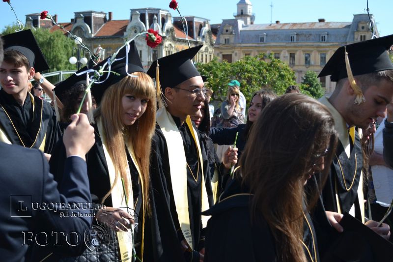 Peste 100 de absolvenți ai Colegiului Național „Coriolan Brediceanu” din Lugoj au participat astăzi la ultima oră de dirigenție, odată cu evenimentele dedicate finalului de școală. Maturi, dar în același timp încercați de emoție, viitorii studenți au participat ca și colegii lor de anul trecut la festivitatea de încheiere de liceu, care a început la ora 9:30 cu celebrul pod de flori, pe sub care tinerii absolvenți au pășit de la școală până la Casa de Cultură a Sindicatelor.