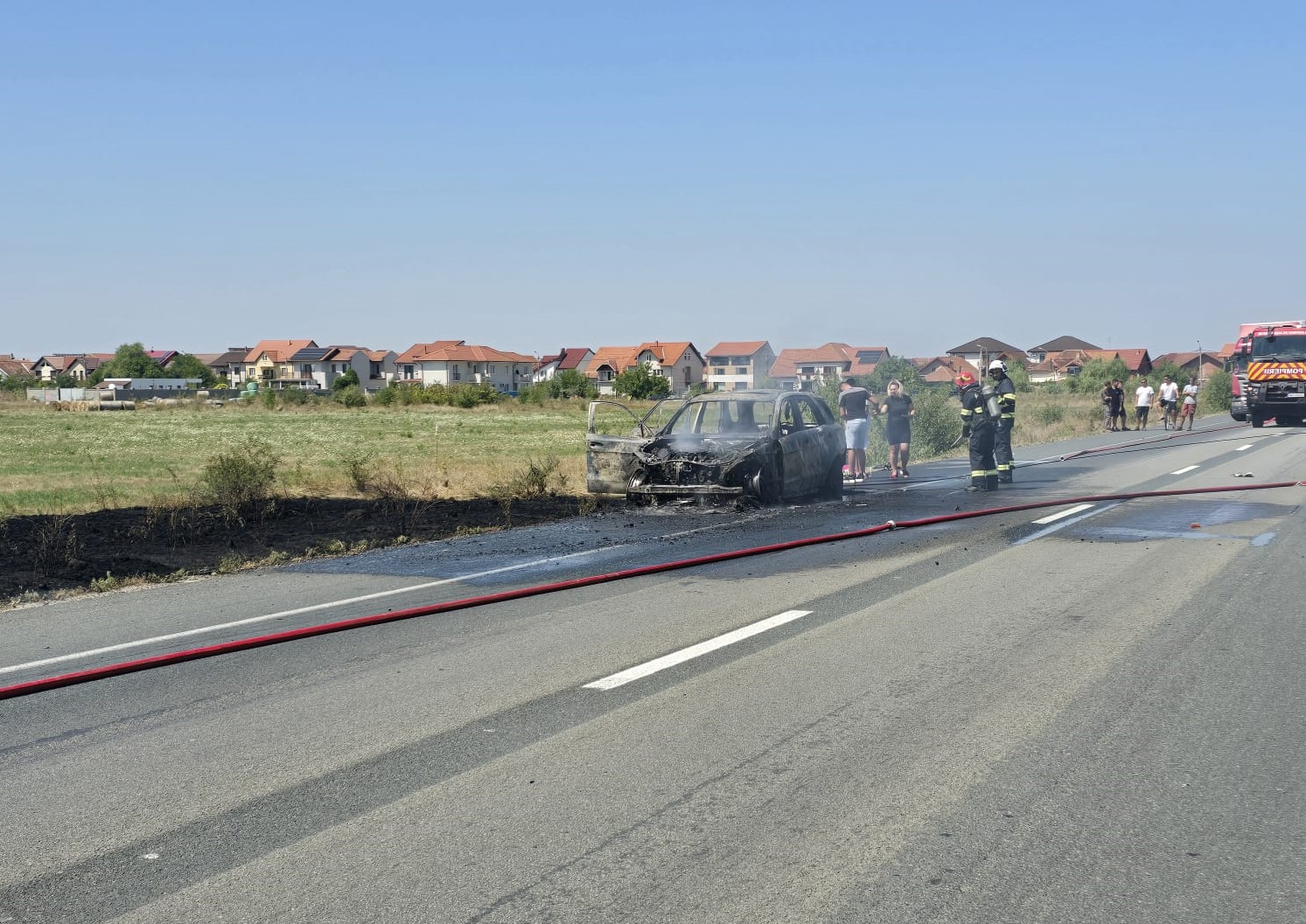 O nouă mașină s-a făcut scrum, pe centura Lugojului, la nici o zi după tragedia de miercuri, în care un tânăr de 30 de ani a murit carbonizat pe același drum. De această dată, echipajele de intervenție au fost chemate în jurul orelor 13, pe drumul de ocolire al orașului, pentru a stinge un incendiu la o mașină.