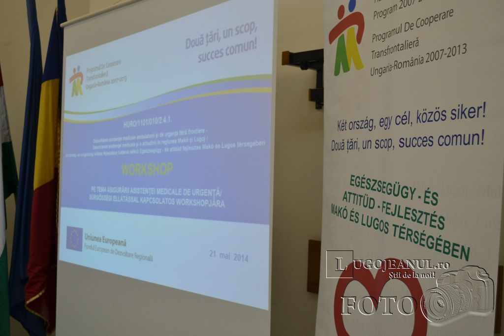 Miercuri, 21 mai, de la ora 11:00, la Universitatea Europeană “Drăgan”, managementul de proiect al Spitalului Municipal “Dr. Teodor Andrei” Lugoj şi Centrul de Asistenţă Medicală a Judeţului Csongrád au organizat workshop-ul pe tema asistenţei medicale de urgenţă, realizat în cadrul proiectului „Dezvoltarea asistenţei medicale ambulatorii şi de urgenţă fără frontiere – Dezvoltarea asistenţei medicale şi a atitudinii în regiunea Makó şi Lugoj”, care se realizează în cadrul Programului de Dezvoltare Transfrontalieră Ungaria-România 2007-2013, cu cofinanţare din partea Uniunii Europene din Fondurile Europene de Dezvoltare Regională.