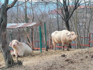 Tot din Sibiu au ajuns și doi bivoli albi, un mascul de 18 ani și o femelă de 14 ani, animale care se bucură de condiții excelente și pot trăi până la 30 de ani.