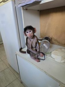 Un alt membru special este un pui de maimuță exotică, născut din împerecherea unui pavian cu mantie și a unei femele de babuin. Deocamdată fără nume, puiul este îngrijit cu multă atenție și hrănit cu biberonul, iar angajații grădinii se asigură că dieta sa este diversificată și echilibrată.