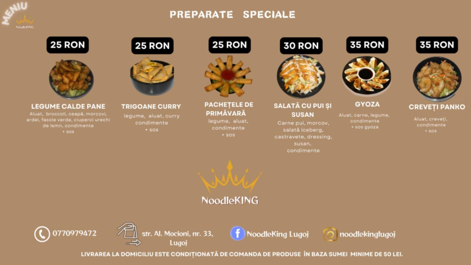 Restaurantul mizează pe prospețimea ingredientelor și pe autenticitatea rețetelor chinezești, promițând o experiență culinară autentică pentru toți cei care îi trec pragul. De asemenea, NoodleKing a actualizat meniul, oferind o varietate de preparate noi, alături de clasicele preferate ale clienților.