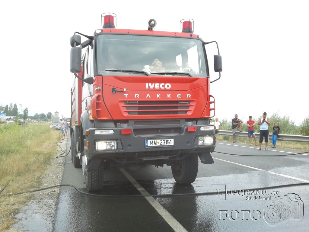 Şoferii care treceau în acele momente prin zonă au observat incendiul şi au sunat la 112. Până să ajungă pompierii la faţa locului, şoferul a încercat să stingă de unul singur incendiul cu extintoarele pe care le avea în dotare, însă nu a reuşit, iar intervenţia pompierilor a fost una necesară, deoarece focul a ajuns şi la miriştea de pe margina drumului, putând să se extindă în cazul în care intervenţia pompierilor nu ar fi avut loc.