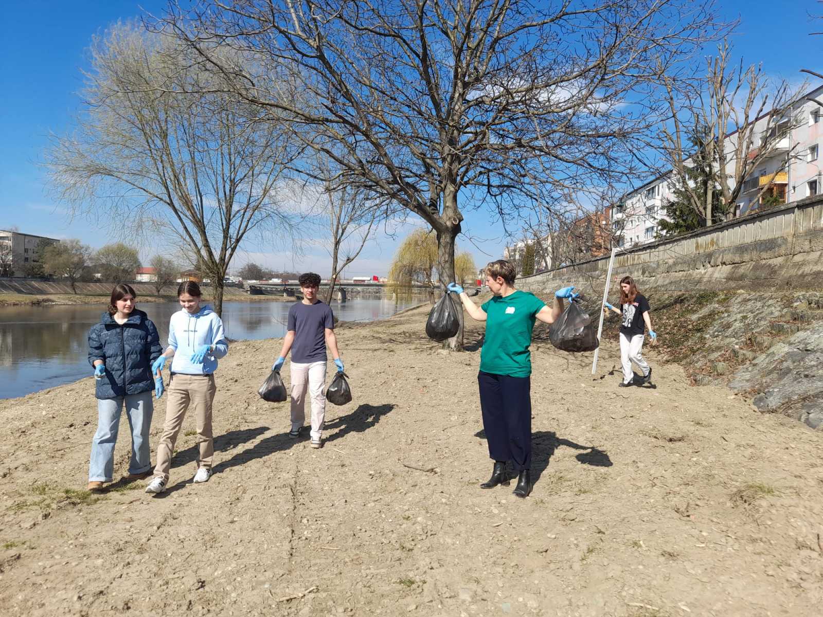 Înarmați cu saci și mănuși, elevii au strâns deșeurile lăsate la întâmplare pe malul râului, contribuind la redarea unui aspect natural zonei.