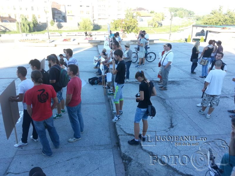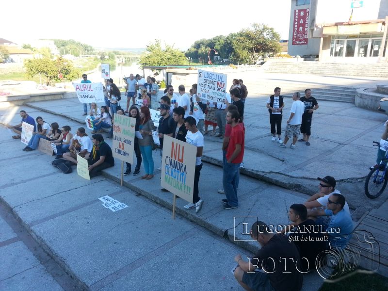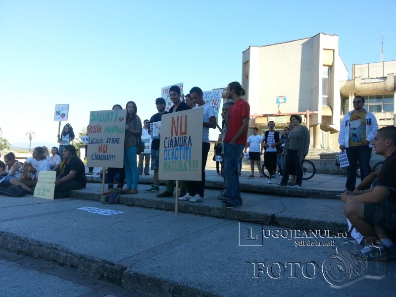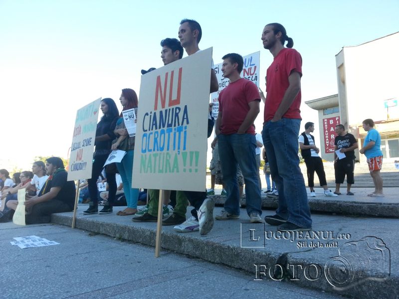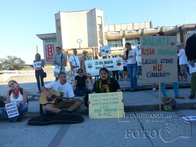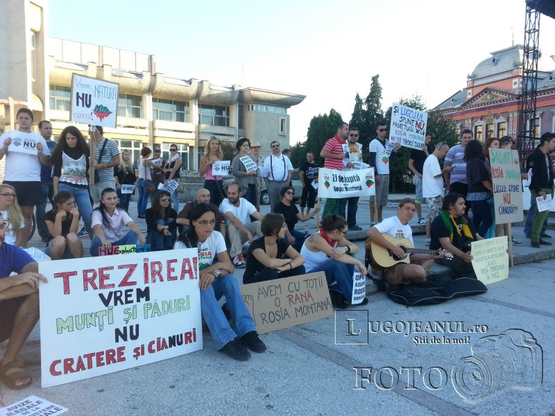 Duminica, in jurul orei 18:00, zeci de lugojeni au iesit pe platoul din fata Casei de Cultura a Sindicatelor, acolo unde si-au spus pasul in legatura cu exploatarea cu cianuri a minei de aur de la Rosia Montana. Printre protestatari s-au aflat foarte multi tineri, care au cantat si expus bannere cu mesaje anti-exploatare, spunand ca decizia guvernantilor de a da drumul valorificarii in acest mod a aurului este complet gresita si va transforma Romania intr-o groapa de gunoi a Europei.