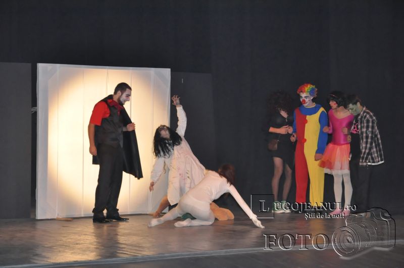 Scena Teatrului Municipal „Traian Grozăvescu” a găzduit joi, în zi de Halloween, de la ora 19:30, spectacolul „Recenzie de Halăuin”, o pantomimă a trupei de teatru „Contrasens”. Tinerii actori, coordonați de Irina Rusu, au pus în scenă o pantomimă care a parodiat sărbătoarea împrumutată de tot mapamondul de la americani.