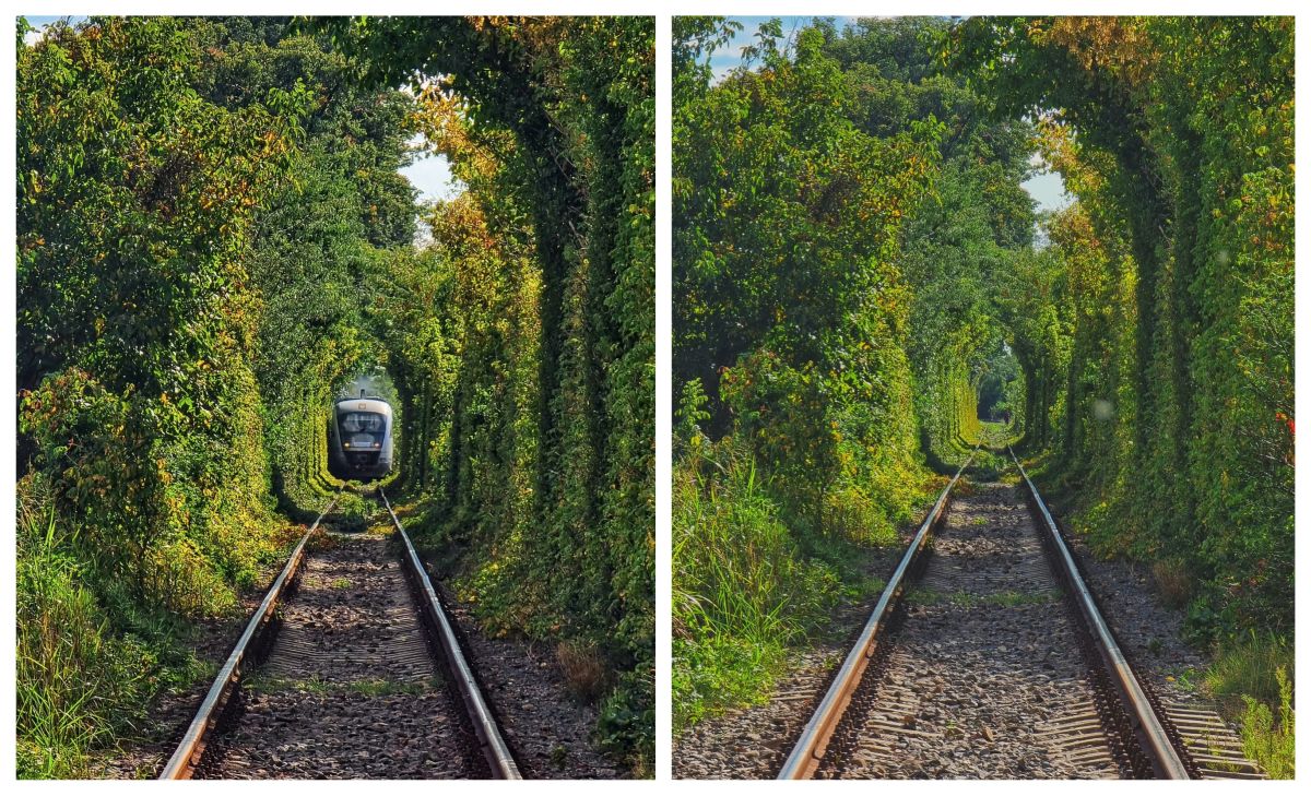 Undeva în spatele spitalului municipal, un fotograf amator a reușit să imortalizeze câteva imagini de-a dreptul spectaculoase. Tunelul creat în mod natural și artificial, de pomii din jurul liniei de cale ferată și trecerea garniturilor pe lângă aceștia, arată impresionant în fotografii.