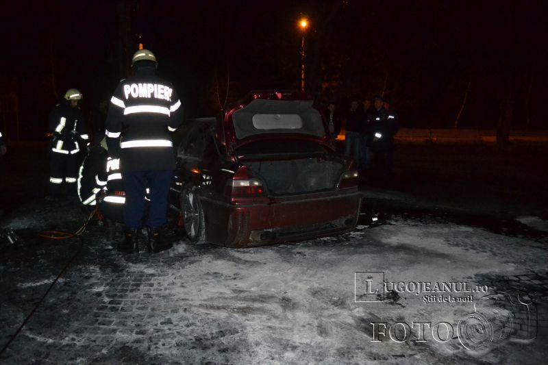 Panică pentru un tânăr din Lugoj în această seară, după ce mașina sa a luat foc pe una dintre cele mai importante artere de circulație din oraș. Evenimentul nefericit s-a petrecut în jurul orei 18:00, pe strada Timişorii, aproape de intrarea în oraș. Un autoturism marca BMW a luat foc în urma unui scurt circuit, o scânteie fiind vinovată de producerea incidentului, care din fericire nu s-a soldat cu victime. La faţa locului s-au deplasat o echipa de pompieri şi una de poliţie.