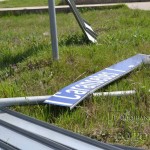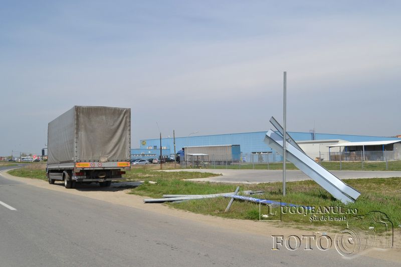 DSC_0550Zi scumpă pentru administratorul drumului Tapiei, din zona industrială a orașului Lugoj, după ce un indicator rutier de mari dimensiuni a fost smuls din pământ și distrus în vecinătatea firmei Hella din municipiu. Din spusele martorilor, vântul, alături de camioanele grele care trec zi de zi pe acolo, ar fi cauza desprinderii indicatorului rutier din pământ, care s-a prăbușit și s-a făcut bucățele în urma impactului cu solul. Acesta arăta celor care intrau pe centura ocolitoare a orașului direcțiile spre Timișoara, Deva, Caransebeș sau București.
