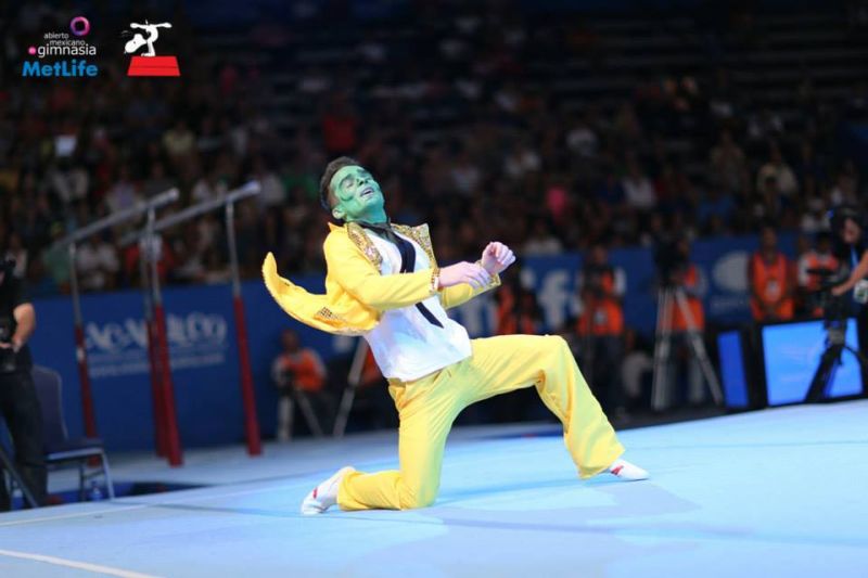 vlad cotuna romania lugoj mask masca mexic open gimnastica foto galerie (4)În fața a câteva mii de oameni, un lugojean a reinventat exercițiul pe care îl avea de făcut într-un concurs internațional de mare importanța, desfășurat în acest weekend la Acapulco, Mexic. După ce a concurat la probele competiției, la proba de freestyle a open-ului “Abierto Mexicano de Gimnasia”, gimnastul lugojean Vlad Cotuna s-a costumat în celebrul personaj de film „The Mask”, interpretat de Jim Carrey și a făcut spectacol pe solul mexican. Chiar dacă a terminat pe locul 7 la general, Vlad a fost aplaudat furtunos după prestația de la sol de spectatori, printre care se aflau și Nadia Comăneci.
