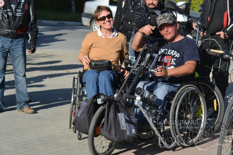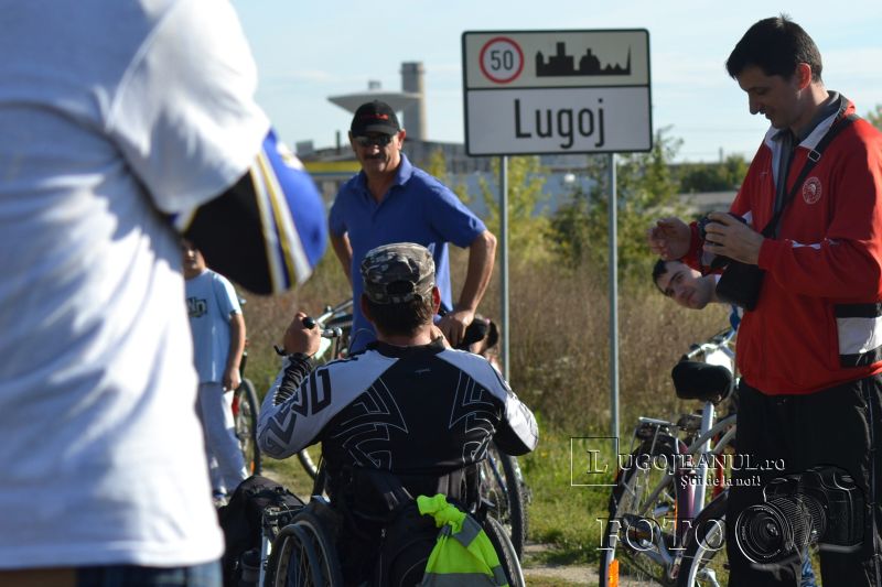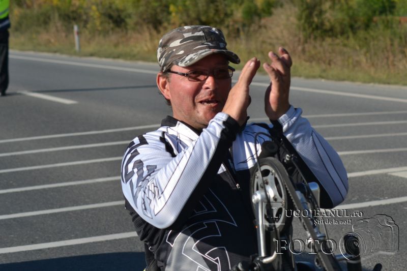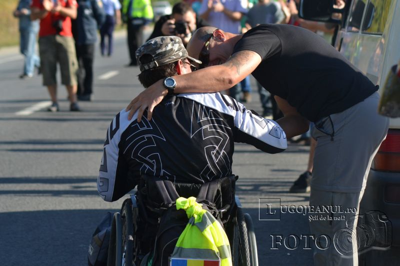 DSC_8267După ce a ajuns la capătul Europei, în cel mai nordic punct de pe continent, Capul Nord, Vasile Stoica, lugojeanul de Cartea Recordurilor, a sosit astăzi acasă după două luni și jumătate și mai bine de 11000 de kilometri parcurși într-un scaun cu rotile. La intrarea în Lugoj l-au așteptat, exact ca la plecare, bicicliștii și motocicliștii lugojeni, care l-au aplaudat furtunos pe Vasile, când acesta a ajuns la pancarta care anunță intrarea în municipiu. De aici, grupul a mers în pas de sărbătoare până la Casa de Cultură a Sindicatelor, locul original de plecare în expediția până la Capul Nord, nu înainte de a face câteva fotografii într-o parcare de la intrarea în oraș.