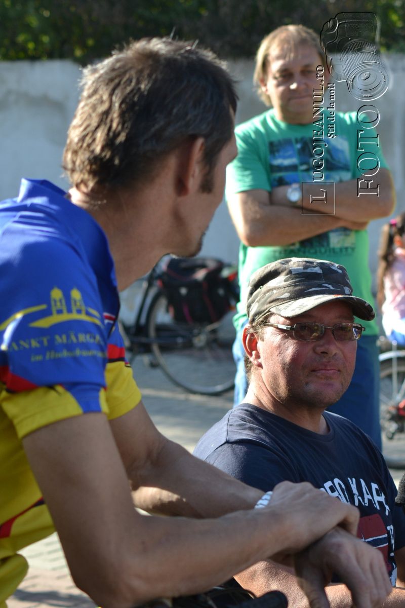 FOTO: Vasile Stoica a incheiat tura de 11000 de kilometri prin Europa pe platoul Casei de Cultura din Lugoj