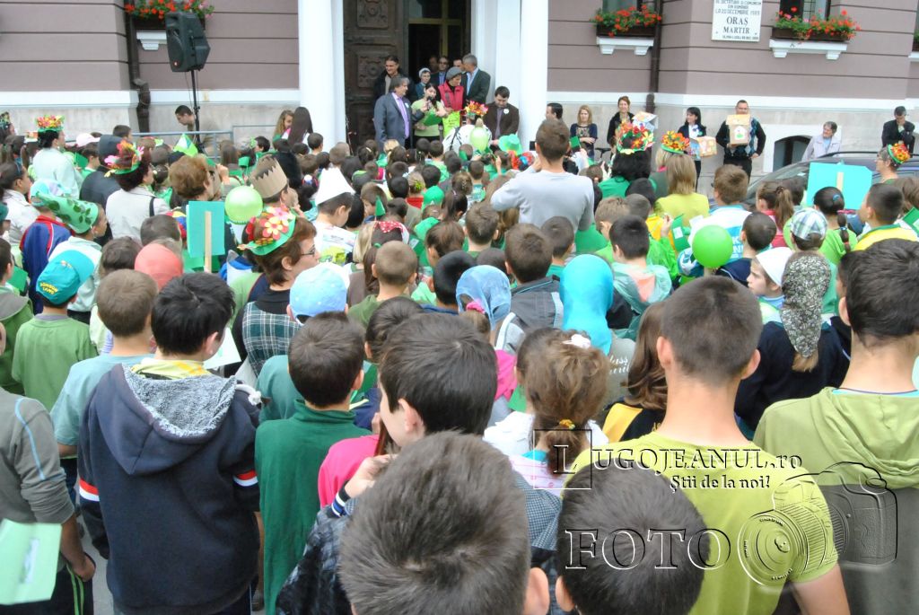 Cu ocazia Zilei Mondiale a Mediului, elevii şcolii gimnaziale numărul 4 din Lugoj s-au îmbrăcat în verde şi au mărşăluit prin oraş, până la primărie, acţiunea având ca scop avertizarea oamenilor despre importanţa protejării mediului înconjurător şi despre modul în care putem proteja planeta. Peste 600 de elevi ai şcolii, alături de colegii lor de la „Branişte” şi „Hasdeu”, grădiniţele PN2, PP4, ajutaţi de primărie şi de Politia Municipiului, au participat la eveniment.