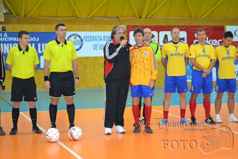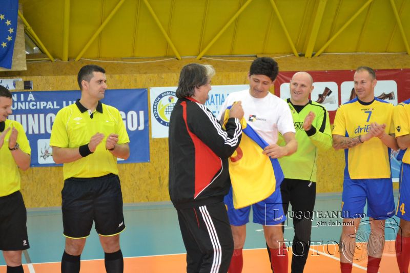 Partida a reunit la Sala Sporturilor „Ioan Kunst Ghermănescu” fotbalişti de marcă ai României, dar şi nume importante ale fotbalului lugojean. Au făcut spectacol la sala de pe strada Timișorii Iosif Rotariu, Miodrag Belodedici, Petru Ţurcaş, Marcel Baban, Paul Codrea, Dorin Rotariu, Srgian Luchin şi Cristian Dancia în echipa Generaţiei de Aur şi Magearu, Cical, Diaconescu, Petruescu, Ploscariu, Todorescu, Hategan şi Nitu în formaţia Lugojului. Invitați speciali au fost primarul lugojean, Francisc Boldea, dar și vicepreședintele Consiliului Județean Timiș, Călin Dobra, care au jucat câteva minute în poartă și respectiv în poziția de fundaș.