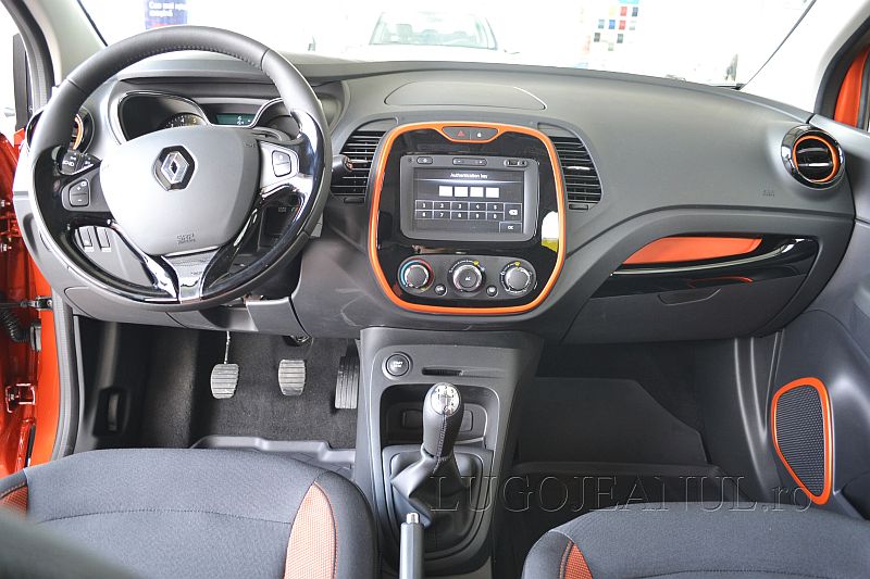 După ce treci peste impactul vizual al primei întâlniri cu Captur, urmează să te aşezi pe scaunul şoferului şi să rămâi plăcut impresionat, peste aşteptări, am completat noi, pentru a doua oară. Interiorul, pe alocuri vopsit cu aceeaşi culoare ca cea a exteriorului, are un design compact, specific modelelor noi ale gamei, care surprind prin eleganţă şi stil şi care îşi perimit să depăşească normalitatea cu care ne-au obişnuit producătorii francezi şi italieni în ultima vreme.
