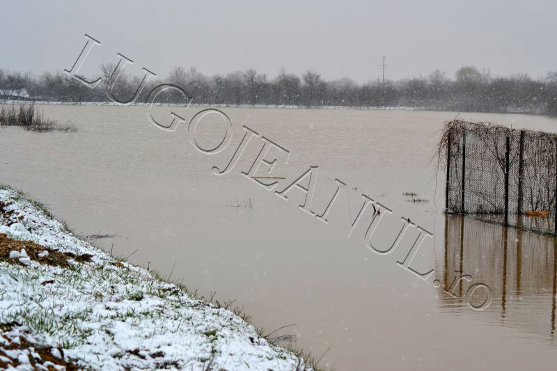 Situația s-a înrăutățit și la Bodo, unde localnici și oamenii de la primărie intervin cu saci cu nisip pentru a opri, pe cât posibil, apele rapide ale canalului Bega.