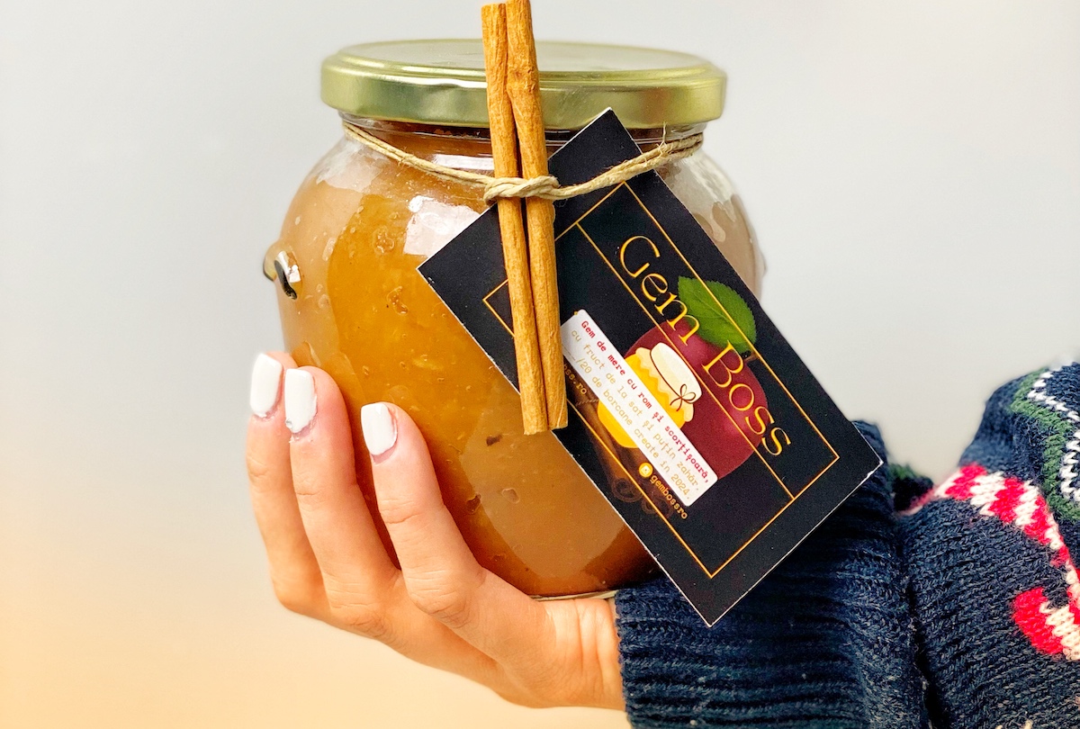 Un producător local din Coșteiu, județul Timiș, a creat o ediție limitată de 20 de borcane de gem de Crăciun, cu scorțișoară și un strop de rom. A pus în borcane un amestec delicios de mere de casă, scorțișoară bio din Sri Lanka și un strop de rom spiced gold.