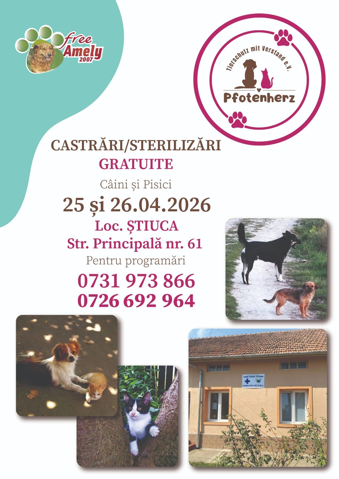 Locuitorii din Lugoj și împrejurimi au ocazia să își sterilizeze gratuit animalele de companie în cadrul unei campanii organizate de Asociația Free Amely 2007, cu sprijinul sponsorului german Pfotenherz – Tierschutz mit Verstand e.V.