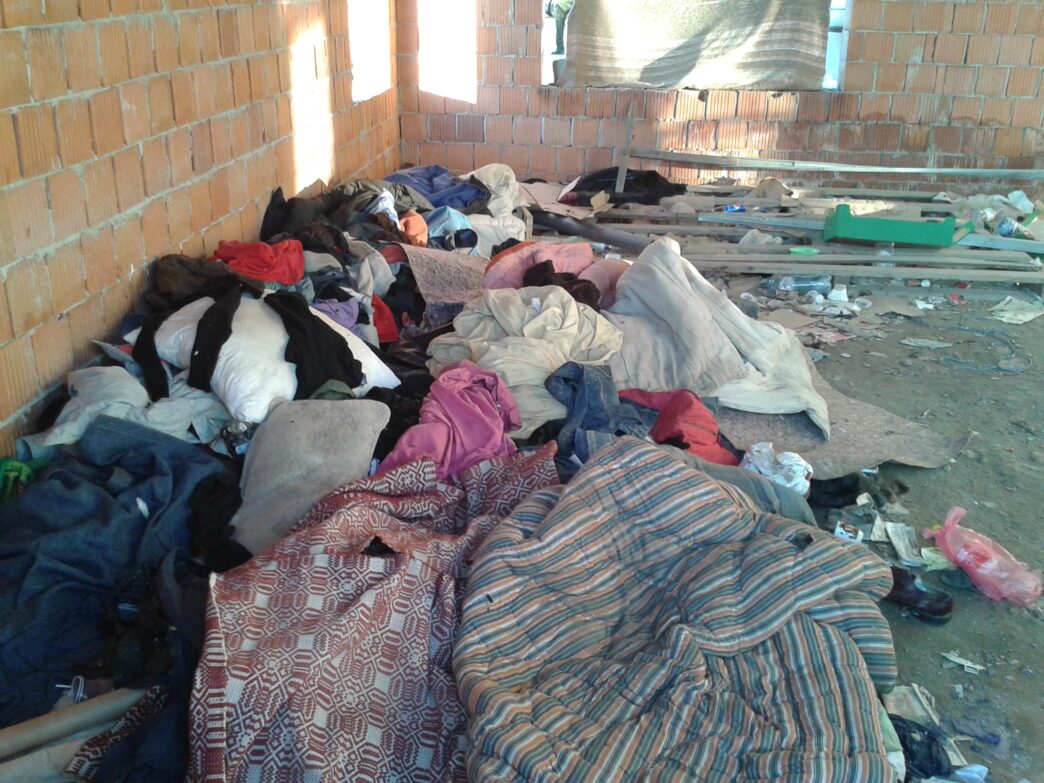 Câțiva boschetari și-au amenajat aici un adevărat dormitor, iar spațiul destinat ferestrelor l-au acoperit cu pături. Imobilul este infect, pentru că cei din zona pieței aruncă tot felul de materiale înăuntru, mai ales că nimeni nu-i trage la răspundere. În interior se află un munte de peturi, cutii de carton rupte, lăzi de lemn și un morman de haine care folosesc şi pe post de pat pentru somnul boschetarilor.