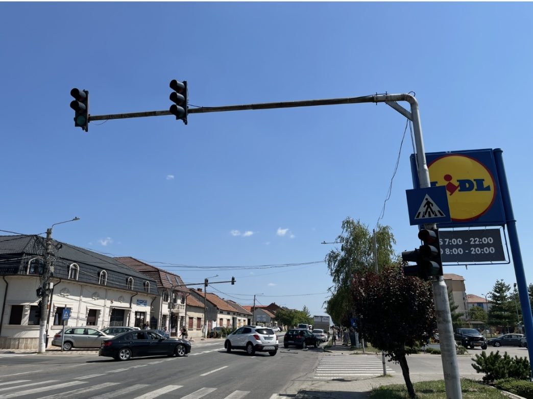 Haos în intersecția de la Lidl Lugoj! Semafoarele nu funcționează și s-a lăsat cu accident!