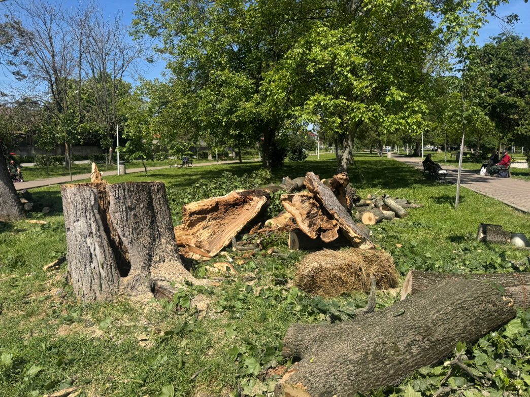 Un arbore de mari dimensiuni, aflat într-o stare avansată de degradare, a fost doborât zilele trecute în Parcul Gării din Lugoj, în urma unei intervenții dificile coordonate de Primăria municipiului.
