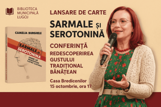 Biblioteca Municipală Lugoj organizează un nou eveniment cultural dedicat iubitorilor de lectură și gastronomie tradițională. Marți, 15 octombrie, de la ora 17.00, la Casa Bredicenilor (str. V.V. Delamarina nr. 4), va avea loc lansarea volumului „Sarmale și Serotonină”, semnat de Camelia Burghele, antropolog cultural.