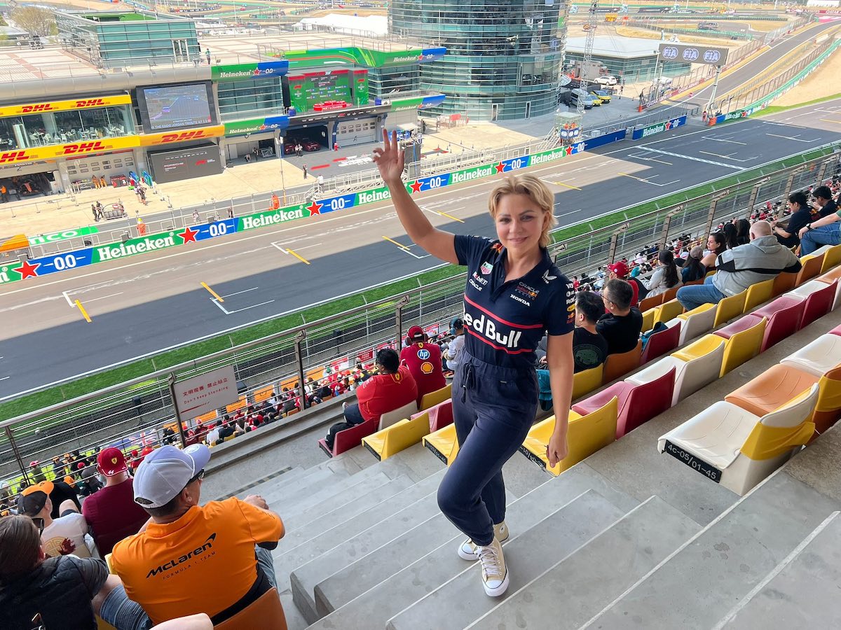 „Ceva despre mine: ador cursele de Formula 1! Îmi plac toate echipele și toți piloții, poate Max puțin mai mult, doar puțin. Nu ratez nici un campionat, citesc toate știrile din domeniu, adică nu sunt un fan oarecare, sunt pasionată cu adevărat. Mă simt ca peștele în apă în Marele Circ!” a declarat artista într-o postare pe Facebook.