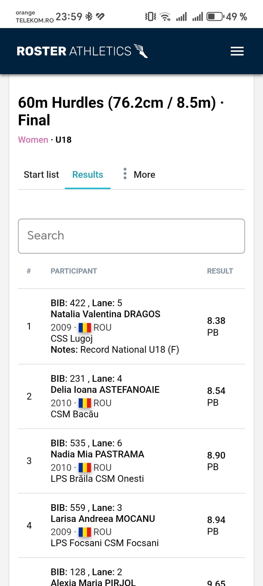 Cu timpul de 8,38 secunde, Natalia a făcut istorie pe pista de atletism, demonstrând abilități excepționale și o pregătire de înaltă clasă sub îndrumarea profesorului antrenor Vasile Canea. Reprezentând cu mândrie Clubul Sportiv Școlar Lugoj și Clubul Sportiv Municipal Lugoj, tânăra atletă și-a consolidat statutul de promisiune a sportului românesc.