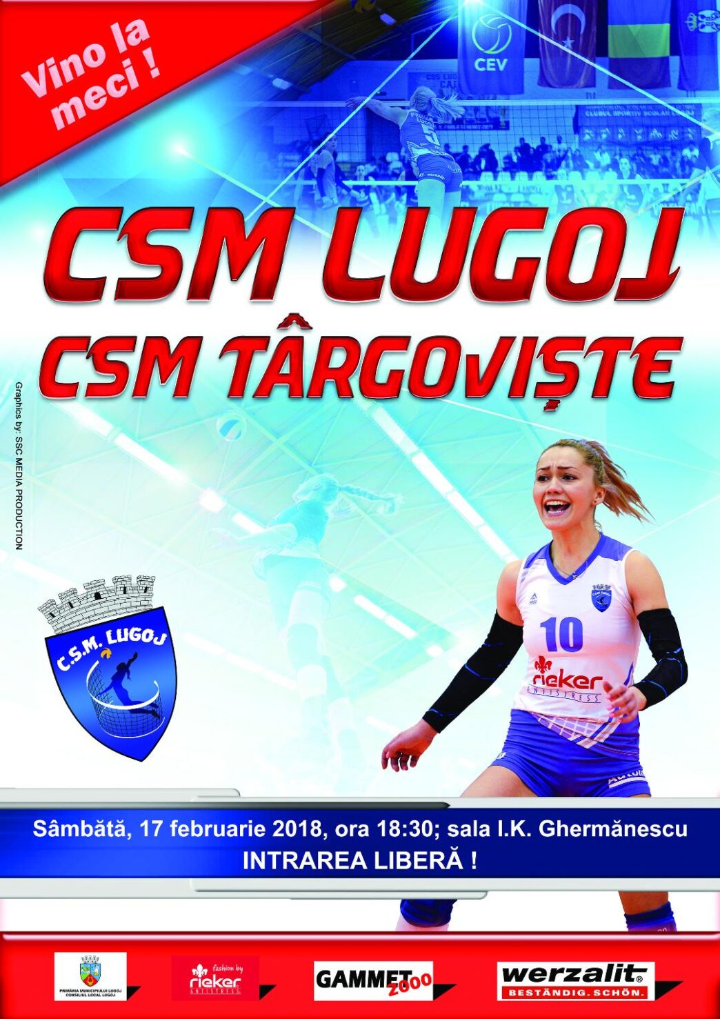“Echipa revenită pe poziţie de Play-Off, vă invită la Sala Sporturilor pentru un meci special, în compania bronzului ediţiei trecute, echipă cu multe sportive de valoare internaţională. Veniţi la sală, veţi avea parte de un spectacol plăcut la volei”, arată Dan Brudiu, preşedintele Secţiei de Volei din CSM Lugoj