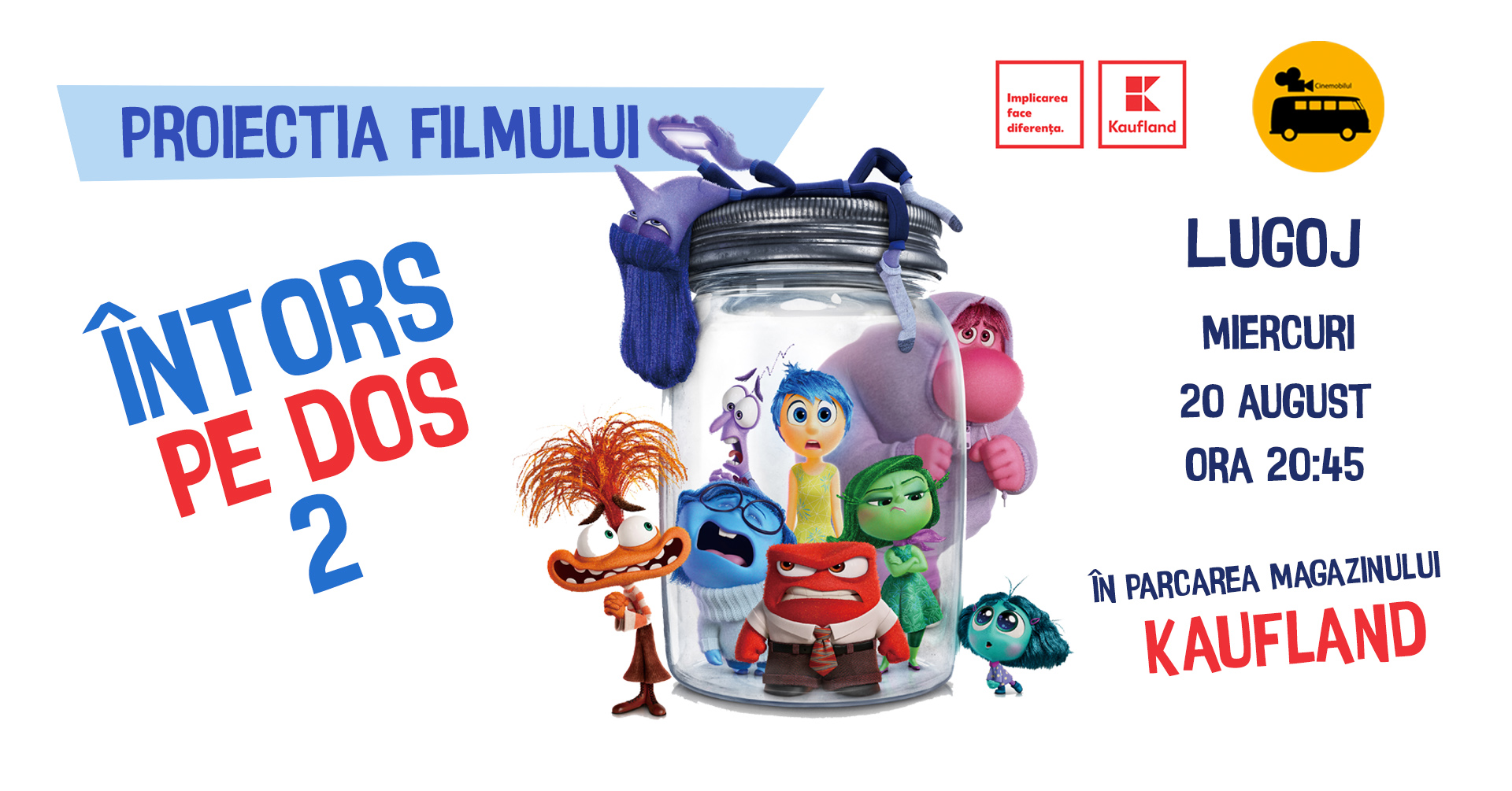 Lugojenii sunt invitați miercuri, 20 august, de la ora 20:45, la o seară de cinema sub cerul liber, organizată în parcarea magazinului Kaufland din oraș. Evenimentul, cu intrare liberă, este dedicat întregii familii și va aduce pe ecran una dintre cele mai așteptate animații ale anului – „Întors pe dos 2” (Inside Out 2).