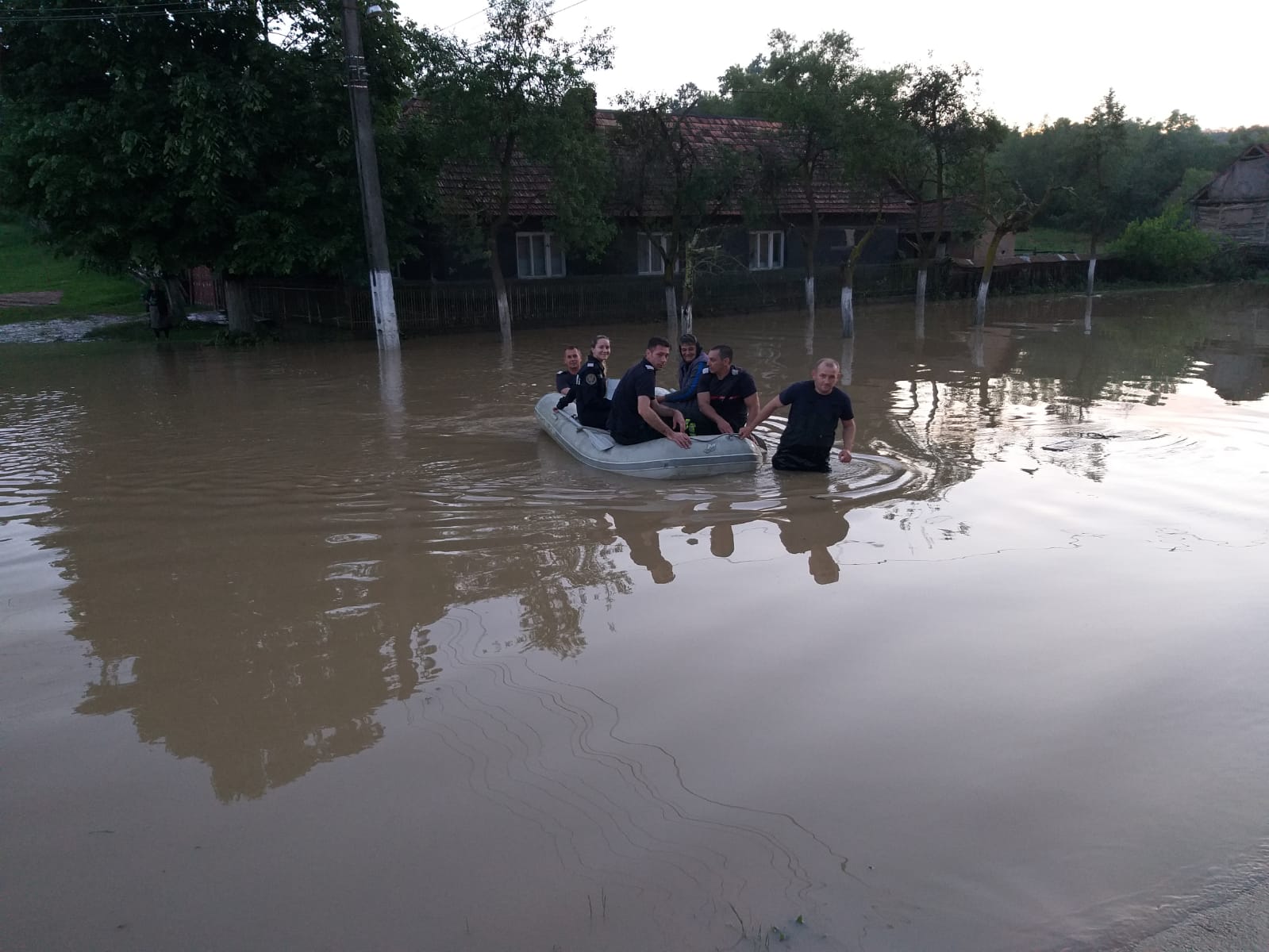 „La nivelul I.S.U. Timiș s-a intervenit pentru evacuarea apei din case, curți și gospodării cu următoarele forțe și mijloace, după cum urmează: