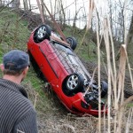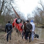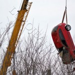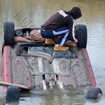 masina scoasa bega macara costeiu seat gorjean student timisoara lugojeanul 2013 (6)Mașina care a ajuns în râul Bega, în localitatea Coșteiu, după ce șoferul acesteia, un student gorjean de 23 de ani, a pierdut controlul volanului și a plonjat cu aceasta în râu, a fost scoasă în această după-amiază din apă. Pentru a aduce mașina pe uscat, proprietarul a fost nevoit să închirieze o macara, care a ridicat automobilul la suprafață. Tânărul și-a recuperat din mașină rucsacul cu tot ce avea în el, însă nu a mai putut salva nimic din acesta, deoarece apa a pătruns în mașină printr-un geam spart.