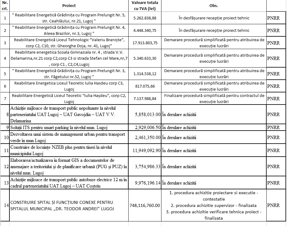 Primăria Lugoj are doar din PNRR proiecte în valoare de peste 800 de milioane de lei, cea mai mare parte din aceste sume nefiind cheltuite în momentul de față: