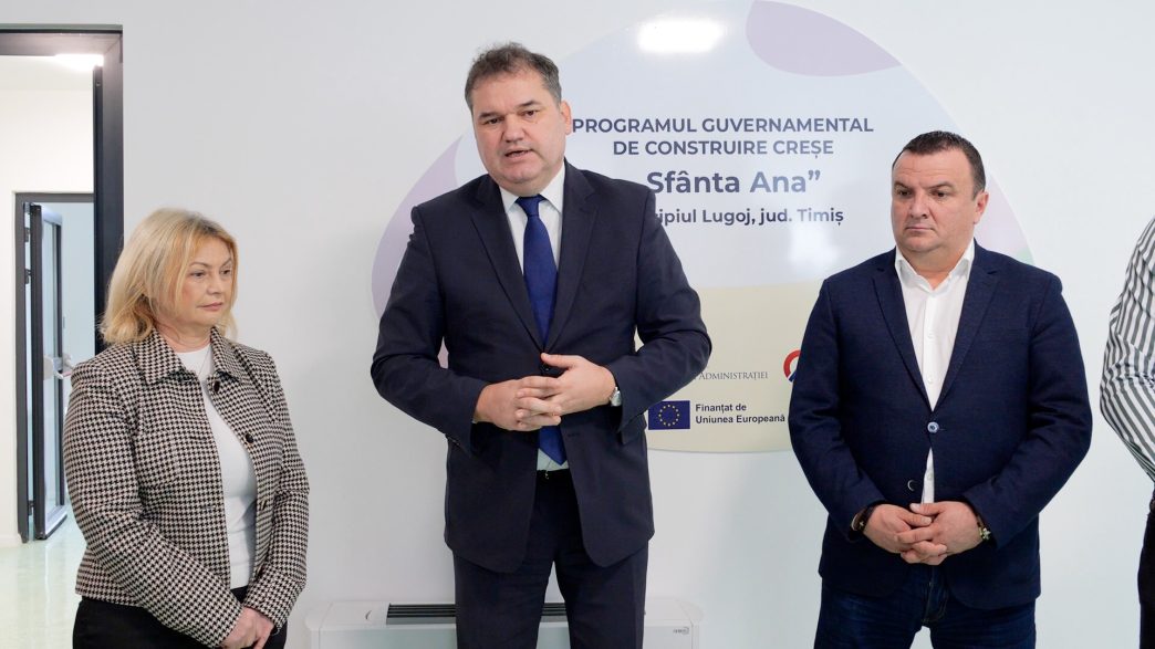 Primarul municipiului Lugoj, Călin Dobra, și ministrul Dezvoltării, Cseke Attila, au participat la recepția noii creșe, construită în cadrul programului guvernamental „Sfânta Ana”, care vizează extinderea infrastructurii antepreșcolare în toată țara.