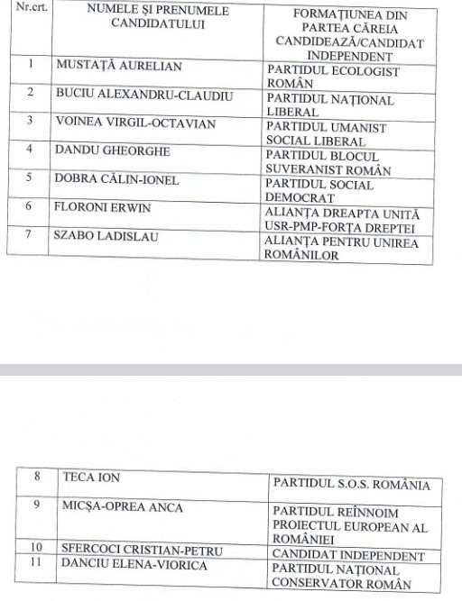 Iată, mai jos, lista candidaților înscriși și partidele pe care le reprezintă.
